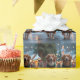 This festive design captures the joyful spirit of the holiday season, featuring an adorable dogs.Nestled in a winter wonderland, complete with a decorated Christmas tree, and beautifully wrapped presents. Snowflakes gently fall, adding a magical touch to the scene, while the vibrant colors of the holiday decorations create a warm and cheerful atmosphere.
