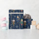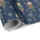 Casse-noix motif bleu marine vintage papier d'emballage cadeau de Noël, papier d'emballage unique de Noël, jouets vintages emballage cadeau de Noël, emballage cadeau de vacances élégant