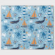 Le thème océanique et nautique présente baleines, voiliers oranges, poulpes, crabes, hippocampes, ancres, phares, et plus encore sur un arrière - plan bleu clair.