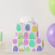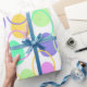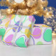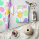 Ce papier d'emballage a une conception pascale d'oeufs en violet, jaune, vert, bleu et rose parsemés de leurs contours.