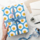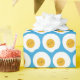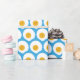 Un motif répétitif d'oeufs frits heureux et ensoleillés se retrouve sur un arrière - plan bleu.