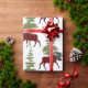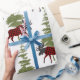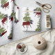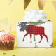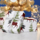 Oies-taureaux en tartan rouge et noir à travers les pins verts. Arrière - plan blanc, personnaliser comme tu veux.