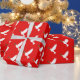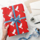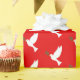 Emballage cadeau rouge coloré à motifs de colombes blanches portant la branche emblématique de l'olivier.