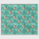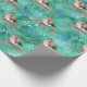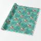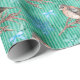 Le beau papier d'emballage contient des oiseaux sucrés assis sur des branches d'arbres et des flocons de neige tombant autour d'eux. L'Arrière - plan est vert avec un motif rayé clair.