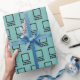Ce papier d'emballage a un design moderne du milieu du siècle de carrés avec une ligne et une ligne de cercles, tous noirs, répétant à travers le design sur un champ de mer. Si vous aimez le design mais préférez différentes couleurs, envoyez-moi un message.