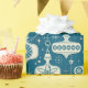 Les années 50 atomique ont inspiré des ornements de Noël en blanc antique, sur un arrière - plan rayé bleu paon foncé, avec pénible tout au long du design. ©Christine Duffield 2021