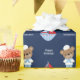 Le design nautique adorable présente une jolie illustration d'un singe portant une tenue de marin et un voilier bleu et rouge clair. Personnalisez-le avec un nom ou un texte de votre choix pour un design unique.