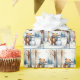Joli ours en peluche marron à l'eau dans les bois d'hiver avec bonhomme de neige. La couleur de bordure bleue peut être changée.