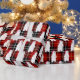 Ours polaire avec guirlande étoilée dans des flocons de neige sur un arrière - plan rouge et noir tartan plaid.