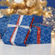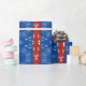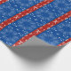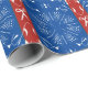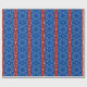 Seamstress, quilters et tous ceux qui aiment la couture et l'artisanat apprécieront ce papier d'emballage rouge et bleu plein d'images du cabinet de couture. Fer, aiguilles, ciseaux et rack de briques sur un arrière - plan floral féminin.