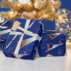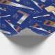 Papier d'emballage bleu avec un motif d'outils de menuiserie tels que scies, ciseaux, mitaines, avions et mallets. Parfait pour les chippies, charpentiers, ébénistes, menuisiers ou do-it-yourself passionnés.