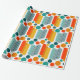Ce papier d'emballage a un design moderne du milieu du siècle des ovales et des cercles en orange, or, turquoise et turquoise sur un champ de blanc. Voulez-vous le même design avec des couleurs différentes? Message-moi.