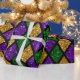Paillettes brillantes vert brillant, violet et doré diamants tissu motif arrière - plan avec espace vide pour la copie, espace pour le texte. Affiche de vacances Mardi Gras en toile de fond.