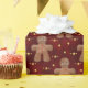 Ce joli papier d'emballage pour Noël présente un motif festif d'hommes en pain d'épices. Autour d'eux sont de petites baubles dorés et des étoiles, avec un (faux) motif de velours rouge en dessous d'eux. Ce papier de Noël très doux et fantaisiste pourrait aussi être utilisé pour l'artisanat en papier de Noël, le scrapbooking ou le découpage pour des projets de vacances, et ferait un papier d'emballage de Noël très approprié pour les cadeaux d'enfants.