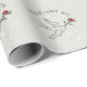 Un design d'inspiration vintage et une atmosphère contemporaine. Ce modèle en papier d'emballage présente une conception d'oiseau vintage avec des baies dans son bec et est placé contre un arrière - plan gris clair avec superposition à effet neige. Enveloppement cadeau de noël délicieux et chic. Voir la collection complète ici : https://www.zazzle.com/collections/peace_love_joy_snow_bird_christmas_items-119230084484852620