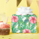 Feuilles de palmiers verts tropicaux et fleur d'hibiscus roses avec des points d'effet parties scintillant d'or rendent ce papier d'emballage parfait pour tous types de cadeaux.