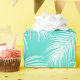 Un design de papier d'emballage gai qui fera ressortir votre cadeau parmi d'autres, ce design est composé d'un motif de branches de palmier blanc sur un arrière - plan turquoise et lumineux. Vous pouvez changer la couleur de l'arrière - plan en n'importe quelle autre couleur en cliquant sur le bouton "customiser" et en sélectionnant un autre arrière - plan. Ce papier d'emballage convient à toute occasion.