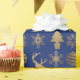 Papier d'enveloppement montré dans une belle couleur or et bleu royal d'arbres de Noël, têtes de rennes et flocons de neige Papier mat montré. Couleur Royal/or. Customisez cet objet ou achetez tel quel.