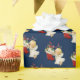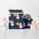 Papier d'emballage cadeau de vacances avec un joli petit dessin d'ange sur un arrière - plan bleu profond.