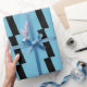 Ce papier d'emballage rayé coloré, à l'aide de mon motif original de rayures bleues et noires, est une façon unique d'envelopper des cadeaux pour Noël, l'anniversaire, l'appréciation des enseignants ou toute autre occasion. Il correspond à de nombreux produits disponibles sur www.zazzle.com/SocolikCardShop*, y compris les cravates, et d'autres cadeaux et cartes. Tous droits réservés © 2013 Alan & Marcia Socolik
