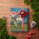 Ce papier d'emballage est illustré avec un lapin qui roule sur un blanc de course.