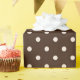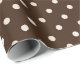 Ce papier d'emballage à pois polka est conçu dans des couleurs marron et blanc.