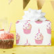 Ce papier cadeau d'emballage est présenté dans un papier blanc avec une jolie conception d'impression de cupcake rose d'anniversaire. Customisez cet objet ou achetez tel quel. Image stock