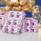 Le papier d’emballage violet de ce chat de Noël est conçu par l’artiste Amanda DeShane.