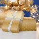 Papier d'enveloppement cadeau Pois d'or métallique brillant.