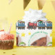 Texte personnalisable et votre Image dans un cadre photo blanc rond, votre photo en motif circulaire avec Elf mignon, train, étoiles et sucres de canne.