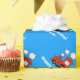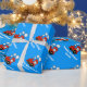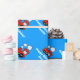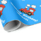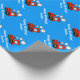 Papier d'emballage d'anniversaire personnalisé | train de choo choo jouet rouge. Modèle de dessin animé de locomotive de jouets avec nom personnalisable de l'enfant. Emballage cadeau pour thème ferroviaire pour jeune garçon ou petit bébé. Couleur arrière - plan bleu personnalisable. Idée sympa pour 1er anniversaire ou baby shower party. Graphiques de jouets pour enfants. Aussi agréable pour les vacances de Noël.