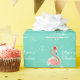 La conception élégante avec un rétro contact comportant les flamants roses de fête utilisant les casquettes, les étoiles rouges et les palmiers de Père Noël décorés des babioles a placé sur un fond d'aqua. Une conception personnalisable pour que vous personnalisiez avec votre propres texte, images et idées. Une image originale d'art numérique créée par chic original.