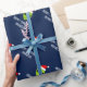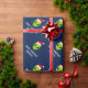 Papier d'emballage de Noël étranger drôle du père noël pour des femmes et des enfants des hommes. Tête étrangère verte portant un giftwrap de casquette de Père Noël personnalisé avec la salutation et le nom de seaspns. La conception drôle d'enveloppe de cadeau d'UFO pour des vacances présente. Faites un pour le fils, petit-fils, nouveau bébé, petit-enfant. Illustration extraterrestre de bande dessinée de l'espace de la vie pour des enfants (garçons/filles) et des adultes. Bleu fait sur commande d'IE d'arrière - plan de couleur.