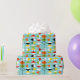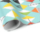 Ce papier d'emballage de rétro motif de harlequin est style moderne de la moitié du siècle à son plus fin. Les caractéristiques de conception inspirées vintages qu'un arrière - plan d'aqua avec des rangées des formes triangulaires formant un harlequin modèlent. Les formes deux-modifiées la tonalité de diamant sont jaunes, blanches, rouges, oranges, noires, vertes, et blanc avec des accents noirs. Mais l'attente, là est plus ! Il y a également des ovales oranges, des ovales verts avec les starbursts noirs, et des contours des diamants noirs. Le temps marche dessus, mais vous vous sentirez comme vous avez trouvé un souffle kitschy du passé avec ce trésor géométrique coloré.