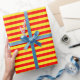 Un papier d'emballage a conçu avec un motif rayé rouge et jaune dans la taille moyenne. Vous pouvez changer le jaune pour une couleur différente d'une manière simple.