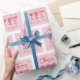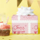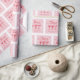 Élevez votre don en utilisant du papier d'emballage personnalisé qui comprend le nom de la future mariée et la date de son événement. Le design est dans une palette tendance de rouge et de rose avec un carré festonné, des éléments dessinés à la main de verres à cocktail, de cœurs et du mot "Cheers". Personnalisez le modèle avec vos détails de texte. © Kimbellished, LLC