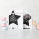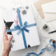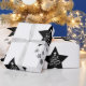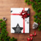 Papier d'emballage noir et blanc classique. Image personnalisée du sapin de Noël à l'intérieur d'une étoile aux flocons de neige.
