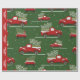 Papier d'emballage de camion de Noël avec des voitures rouges vintage sur arrière - plan vert naturel avec des flocons de neige. Ajoutez votre propre texte avec l'outil Zazzle facile à utiliser ! Visitez le magasin pour voir toute la collection.