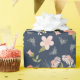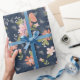 Papier d'emballage tendance inspiré des fleurs botaniques et des abeilles dans les tons bleu marine, rougissant et pêche. Parfait pour les mariages de jardin botanique et les douches nuptiales.