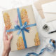 Papier Cadeau Papier d'enveloppement brillant en plumes dorées,