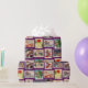 Ce papier d'emballage de Noël coloré a 8 belles cartes postales vintage de Noël disposées sur un arrière - plan festif et violet avec des flocons de neige. Partage des images de vacances vintages et mignonnes avec tes amis et ta famille.