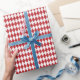 Un papier d'emballage conçu avec un motif arlequin rouge foncé et blanc de taille moyenne. Vous pouvez changer le blanc pour une couleur différente de manière simple.