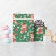 Beau papier d'emballage fox de dessin animé personnalisé avec un nom ou tout texte personnalisé. Envelopper vos cadeaux pour Noël ou les Fêtes, avec des dessins animés et des illustrations d'hiver dans des couleurs rouges et vertes.