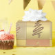 Ce papier d'emballage présente l'image brillante et stylisée d'un arbre de Noël accompagné d'un texte "Joyeuses fêtes". L'arrière - plan est constitué de carreaux carrés aux teintes dorées et dorées roses.