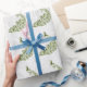Envelopper les cadeaux pour la mariée et le marié avec un rouleau de papier Mariage de Vin Peacock Vert. Le papier enveloppant est un arrière - plan gris clair et blanc à la vigne à feuilles avec un paon vert carrelé. Papeterie mariage supplémentaire et cadeaux disponibles avec ce design aussi.