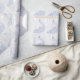 Envelopper les cadeaux pour la mariée et le marié avec un rouleau de papier Mariage de Vin Peacock bleu clair. Le papier à envelopper présente un arrière - plan gris clair et blanc à la vigne en feuilles avec un paon bleu clair carrelé. Papeterie mariage supplémentaire et cadeaux disponibles avec ce design aussi.