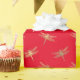 Ce papier d'emballage présente un motif de libellule de feuille d'or faux moderne sur arrière - plan rouge.