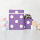 Papier d'emballage motif pois violet blanc lavande. Couleur arrière - plan personnalisée derrière le motif à petits pois blanc. Joli cadeau pointillé pour anniversaire, Mariage, douche nuptiale, anniversaire ou cadeaux de Noël. Changez la quantité pour obtenir le prix le moins cher par rouleau. Elégant papier d'emballage poli pour hommes, femmes et enfants. Customiser la taille ronde du point à petit ou grand.