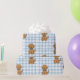 Papier d'enveloppement Goldendoodle adorable - En vichy bleu Arrière - plan Faites chaque cadeau spécial avec ce papier d'emballage charmant avec des chiots d'endoodle doré brun doux portant des arcs bleus, dressé contre un arrière - plan en vichy bleu classique. Le design ludique allie style champêtre intemporel et amour du chiot mignon, ce qui le rend parfait pour les anniversaires, les baby showers, les amoureux des animaux de compagnie et toute occasion joyeuse. Imprimé avec un motif extensible, ce papier apporte chaleur, plaisir et personnalité à chaque cadeau que vous enveloppez.