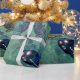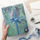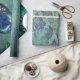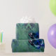 Enveloppe cadeau avec un arrière - plan damassé en fausse feuille éblouissant aux accents vert et bleu avec un papillon pétillant.